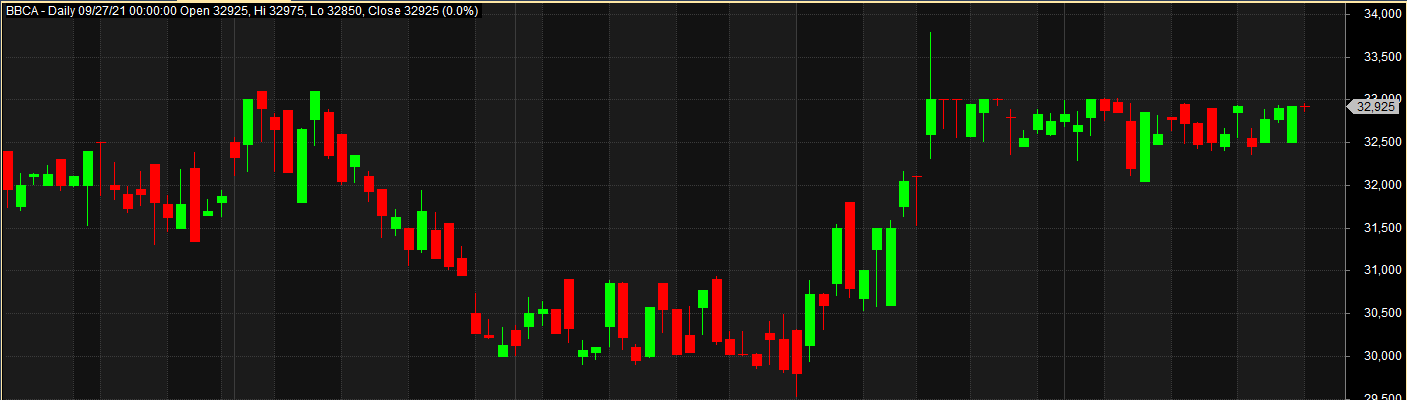 - Real body, merupakan bagian yang dimulai dari opening price dan berakhir pada closing price.